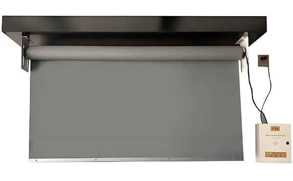 连接电源线和控制线,将两当挡烟垂壁安装在支架上,并用螺丝固定。